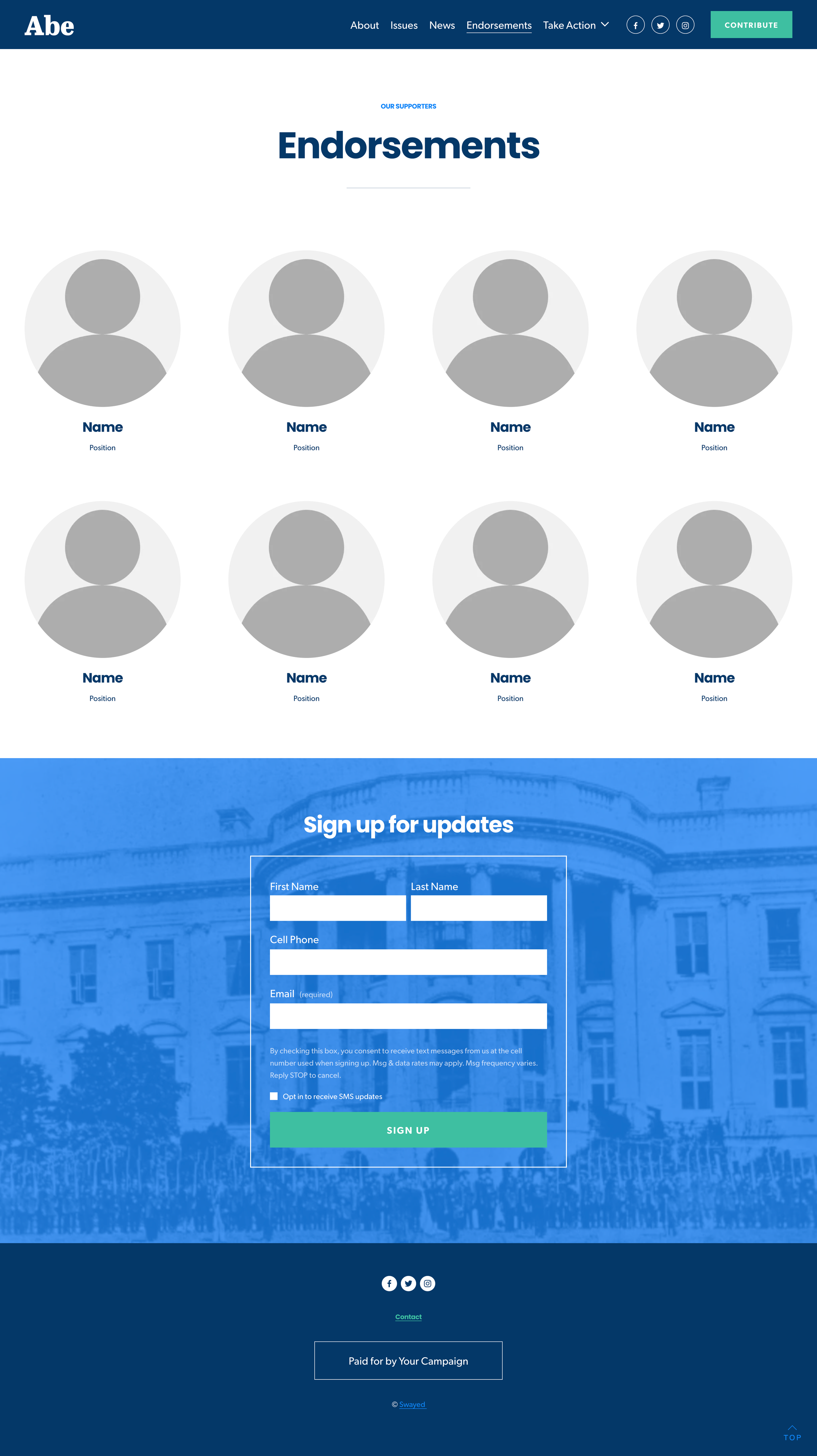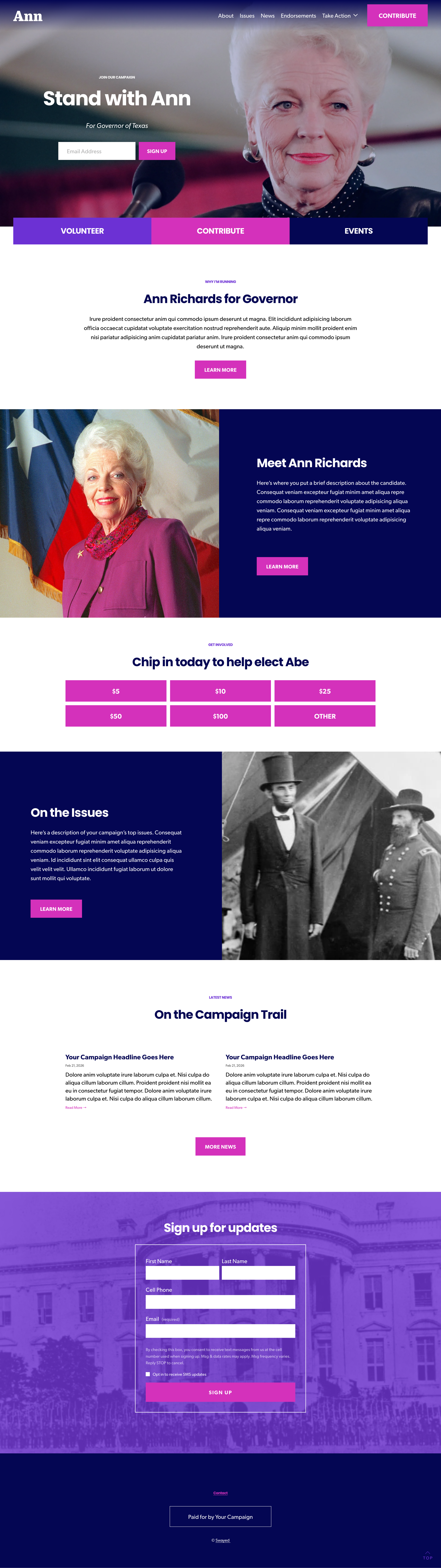 You can customize pretty much everything, but you only need to drop in your photos, text, and campaign branding.