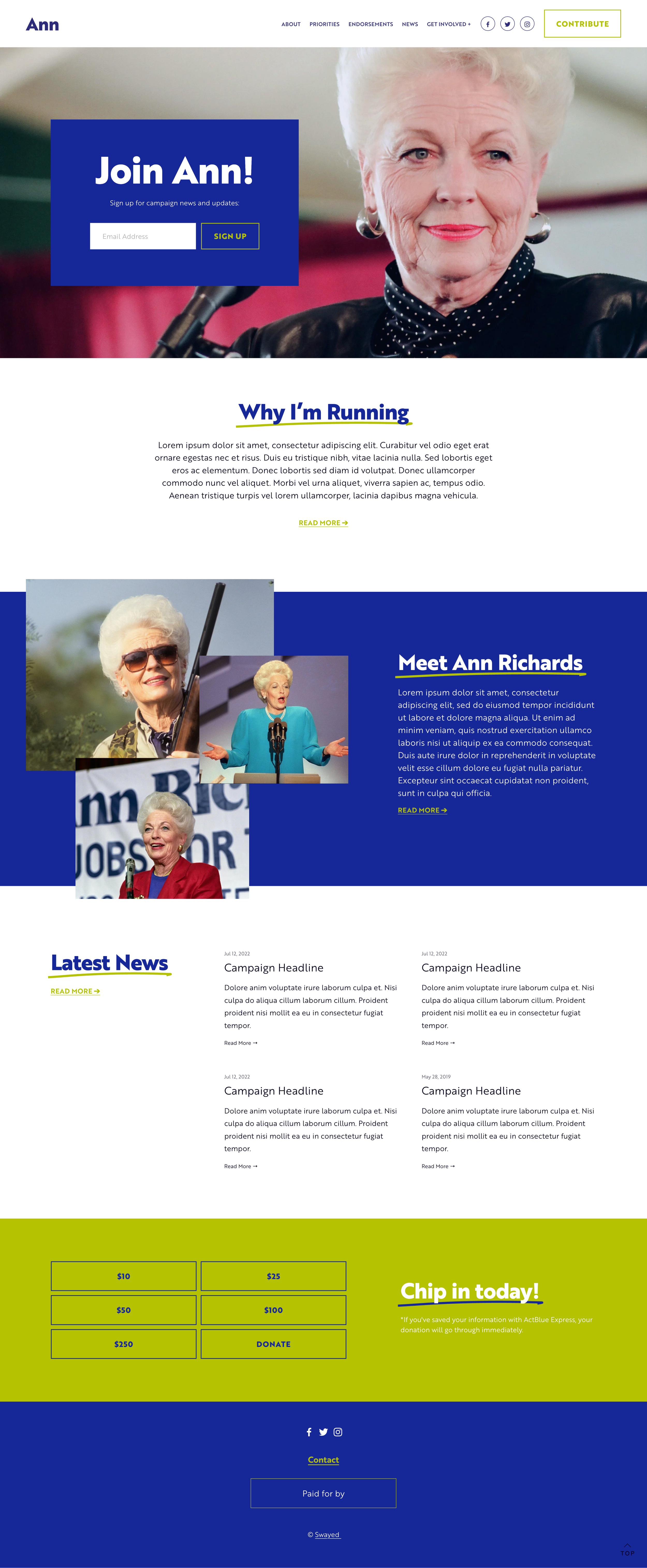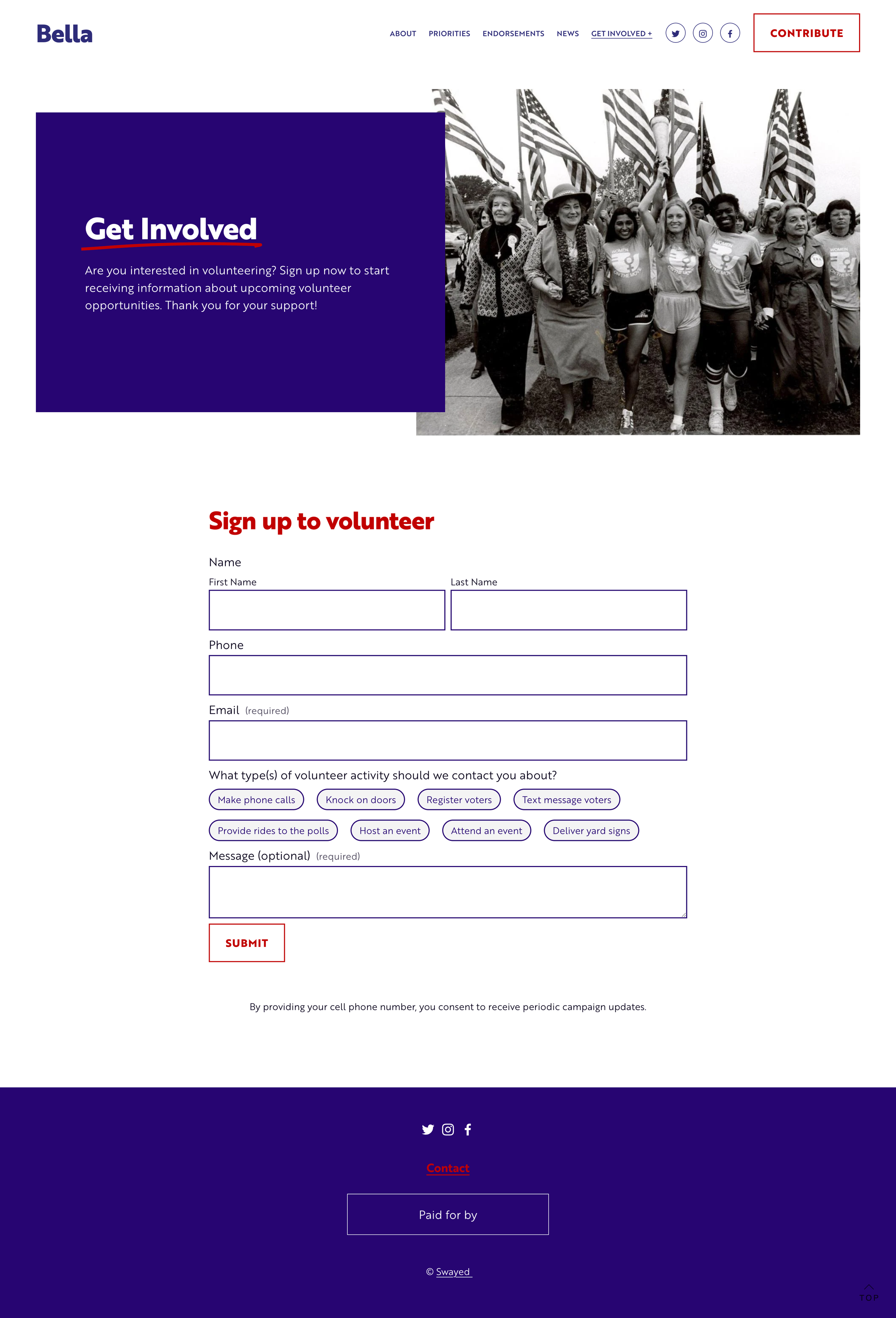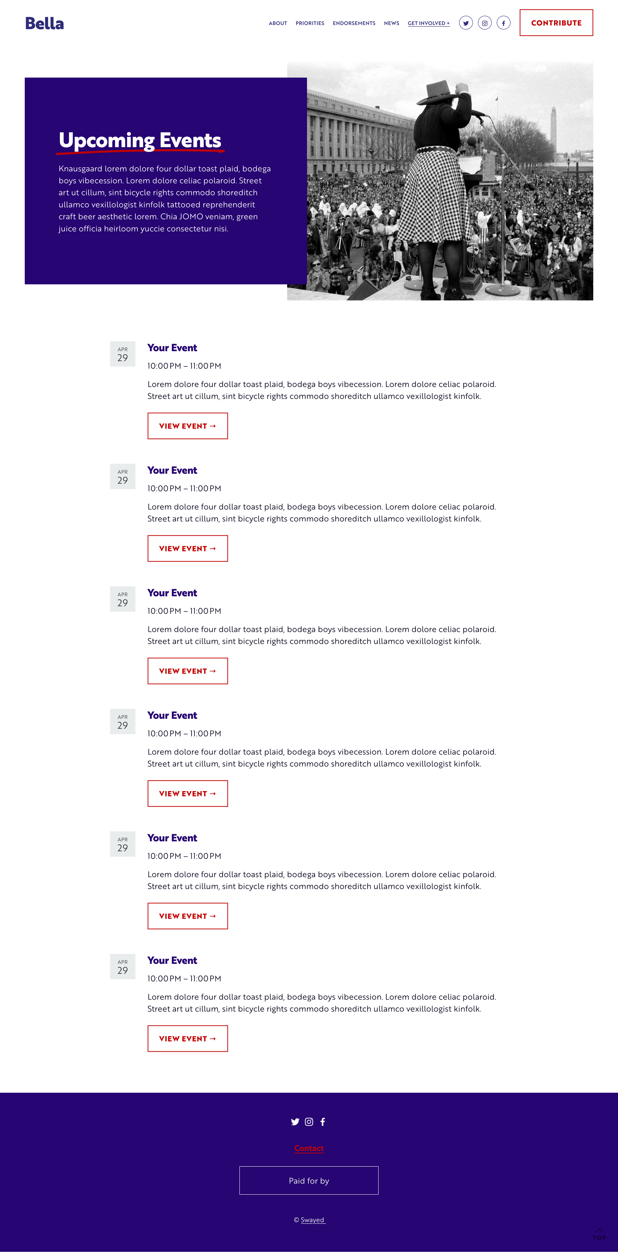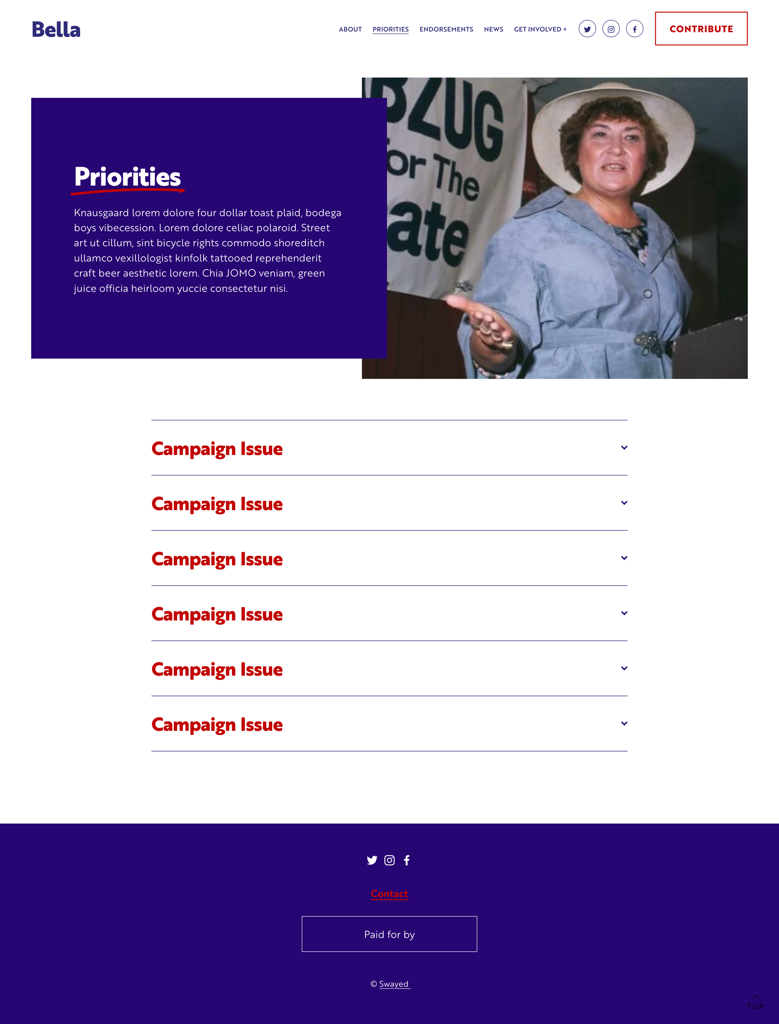 Like all our designs, “Bella” is super user-friendly, fully customizable, and a perfect fit for political campaigns of all sizes.